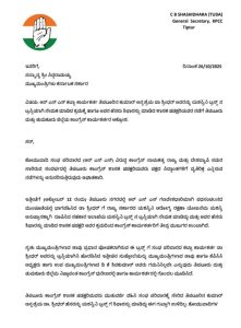 ಅಲ್ಲದೇ ಕಾಂಗ್ರೆಸ್ನ ರಾಷ್ಟ್ರೀಯ ಅಧ್ಯಕ್ಷ ಮಲ್ಲಿಕಾರ್ಜುನ ಖರ್ಗೆ, ಲೋಕಸಭೆಯಲ್ಲಿ ವಿರೋಧ ಪಕ್ಷ ನಾಯಕ ಮಲ್ಲಿಕಾರ್ಜುನ ಖರ್ಗೆ, ಕೆಪಿಸಿಸಿ ಅಧ್ಯಕ್ಷ ಡಿ.ಕೆ.ಶಿವಕುಮಾರ್ ಮತ್ತು ಎಐಸಿಸಿ ಮಯೂರ್ ಜಯಕುಮಾರ್ಗೂ ಪತ್ರ ಬರೆದಿದ್ದಾರೆ.